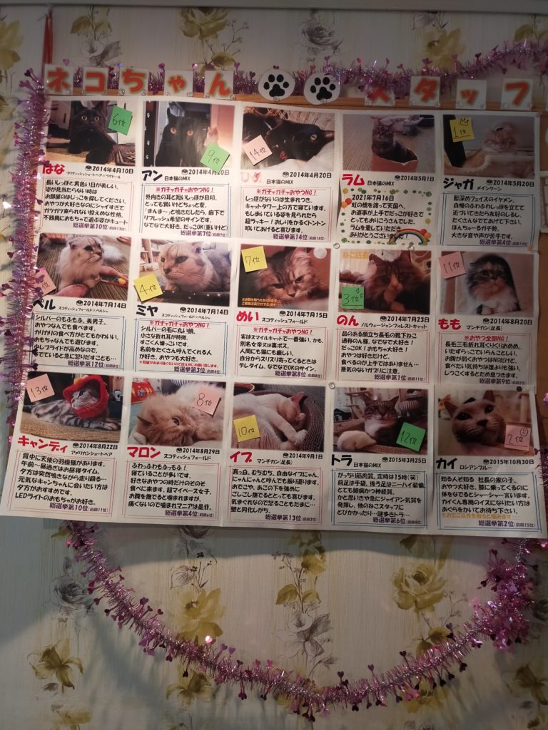 猫ちゃんスタッフはその日によって変わるようで、私が行った日は