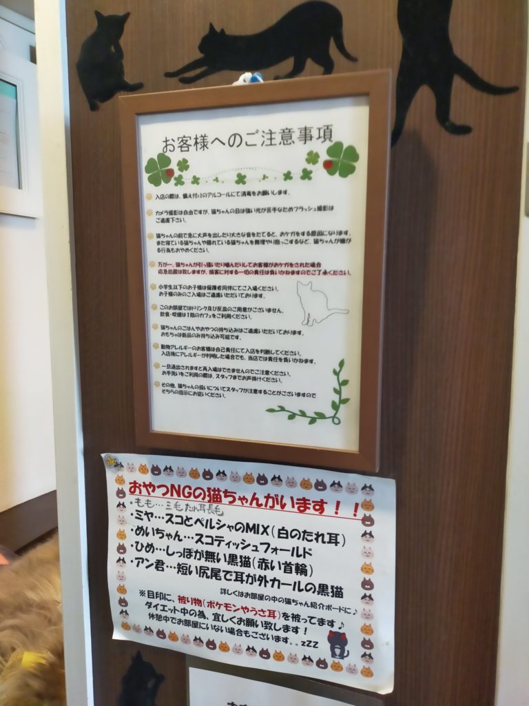 部屋に入っですぐにスタッフさんよりしっかりとルール説明され、おやつNGな猫ちゃんのことも教えてくれました。
