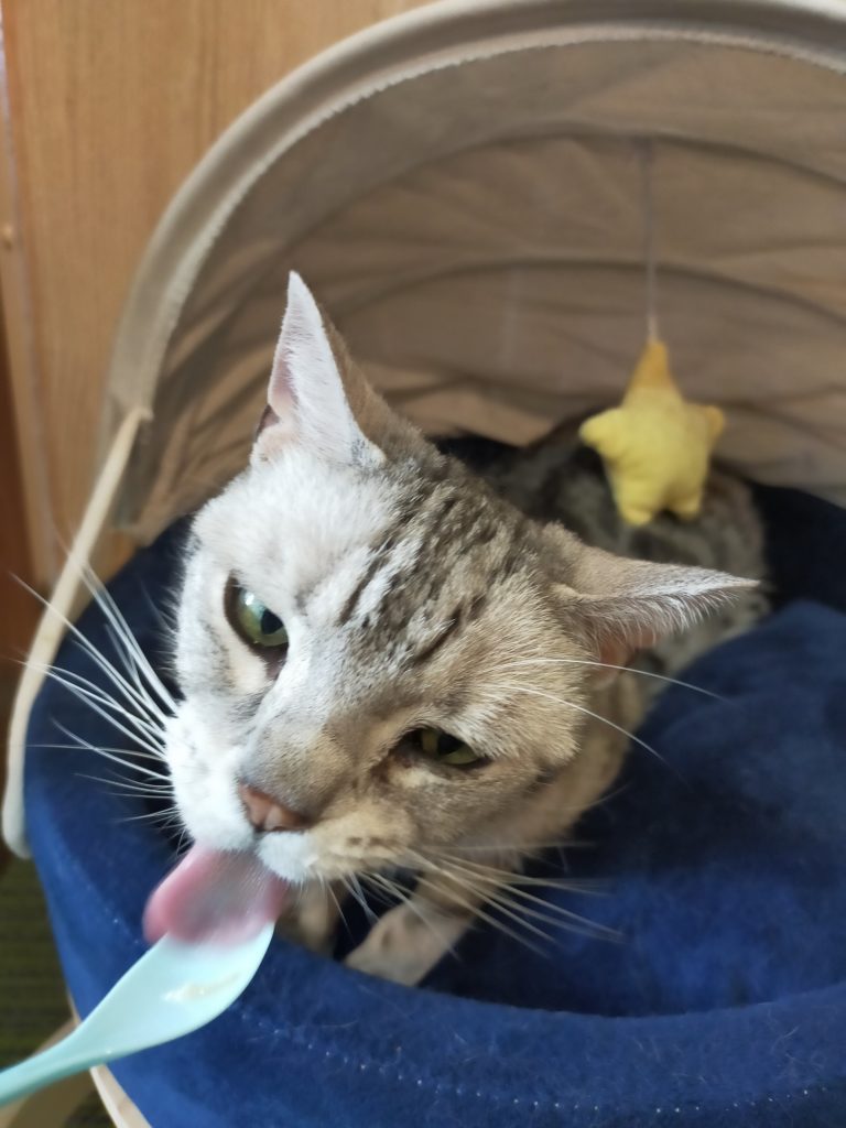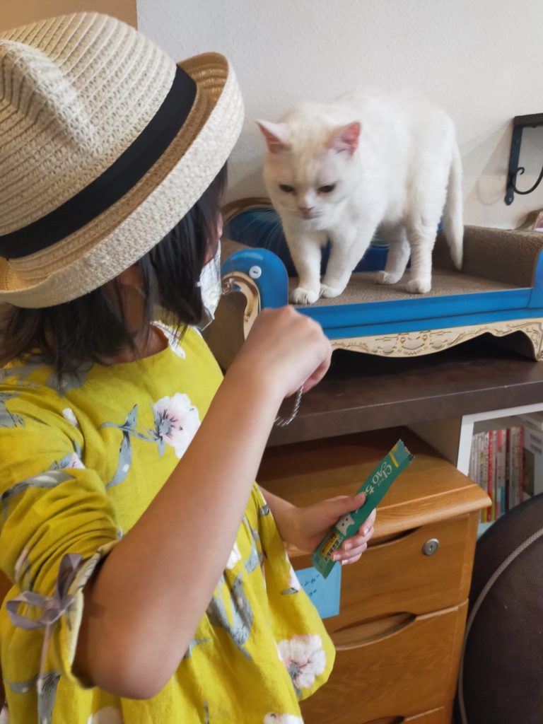チュールは小皿やスプーンが用意されているので手を汚すこともなく衛生的にあげることができました。