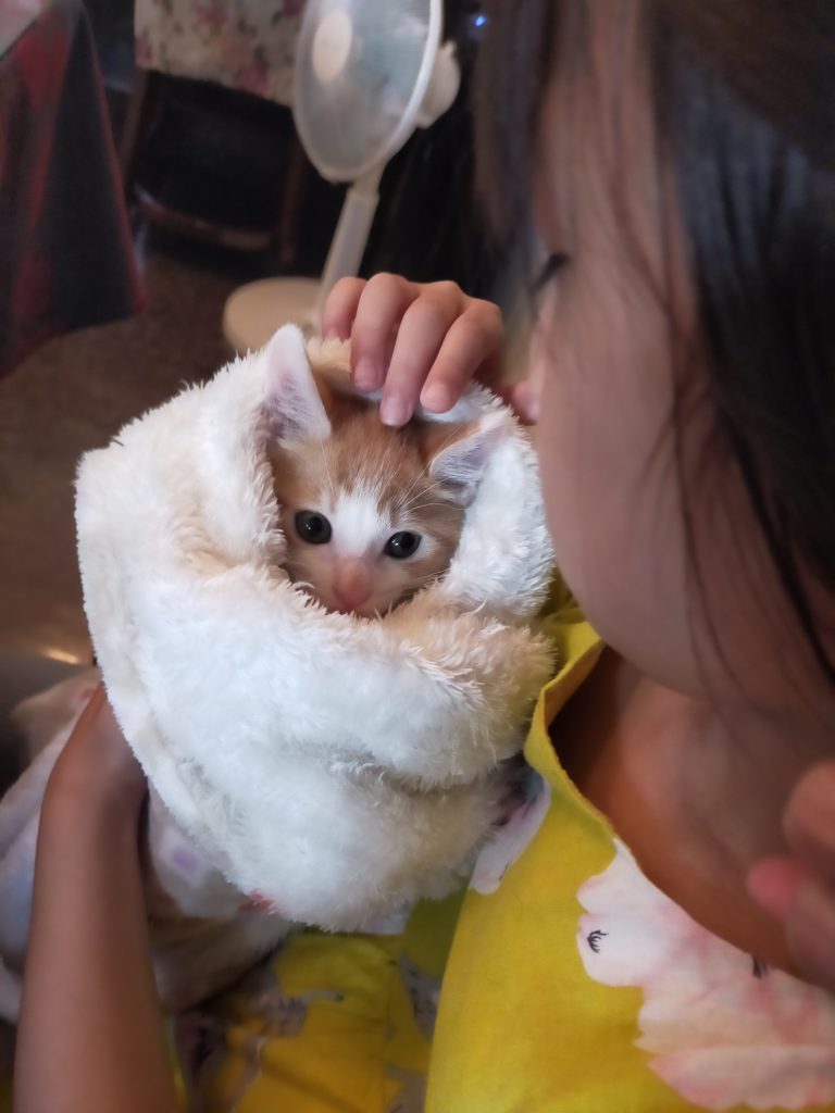 生後一週間の子猫のだっこ体験もできました!可愛いすぎです。娘大喜び