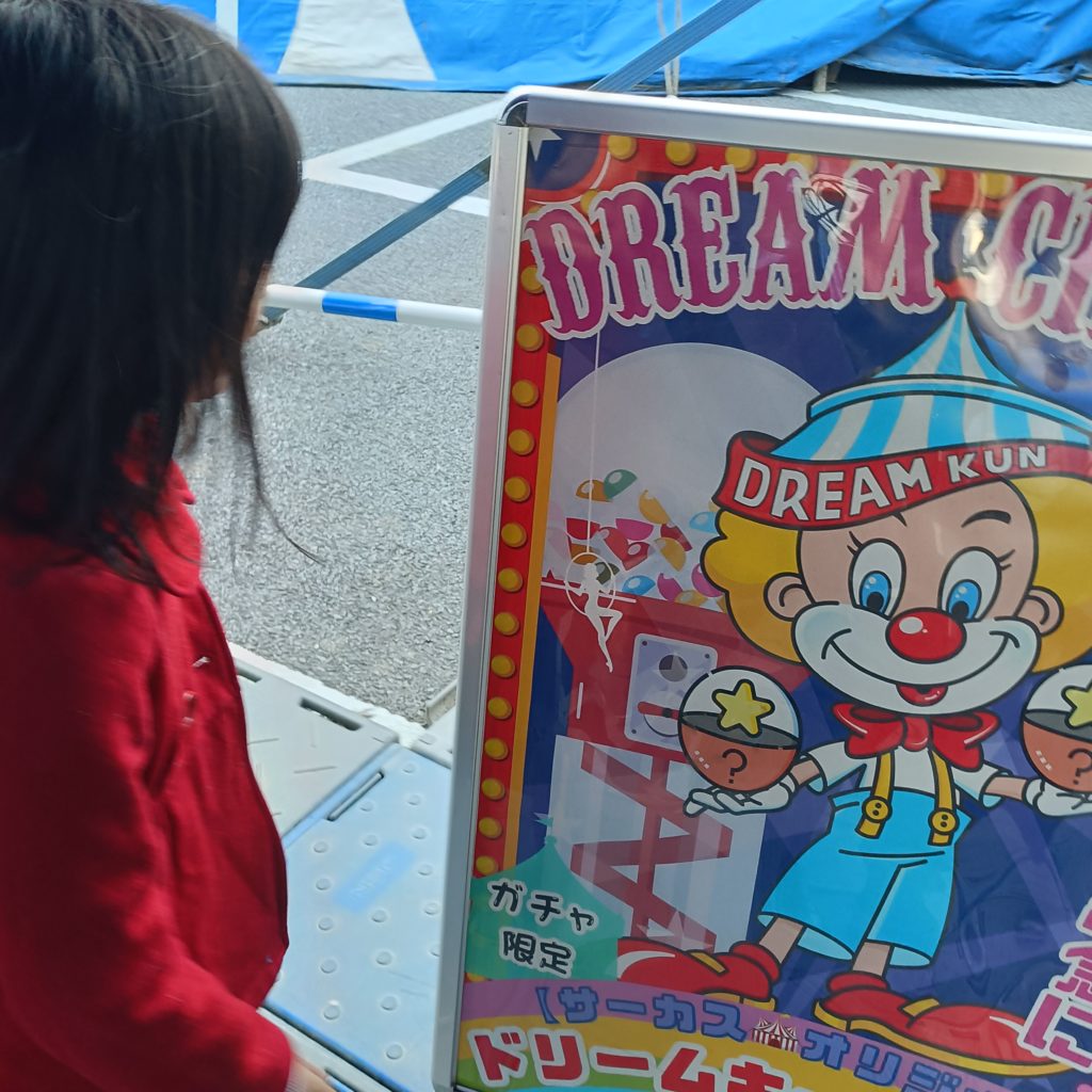 会場外の施設、売店、撮影サービスなど軽食やドリンクの売店があり、休憩時間にも買えるし、客席で食べてもいいとアナウンスが流れていました。自動販売機もあります。(正面入口から会場の右入口までの絶対通る通路が、なぜか喫煙場所…)テントの外では、大車輪の体験が!やってみたかったけど、娘は、絶対イヤ!早く帰ろう!と言うのであきらめました。ふわふわドームみたいな遊び場もありました。ストーブがあるし、人の熱気で思ったほどは寒くなかったです。