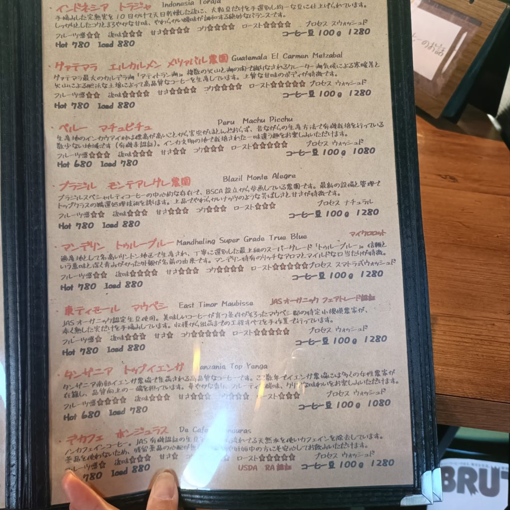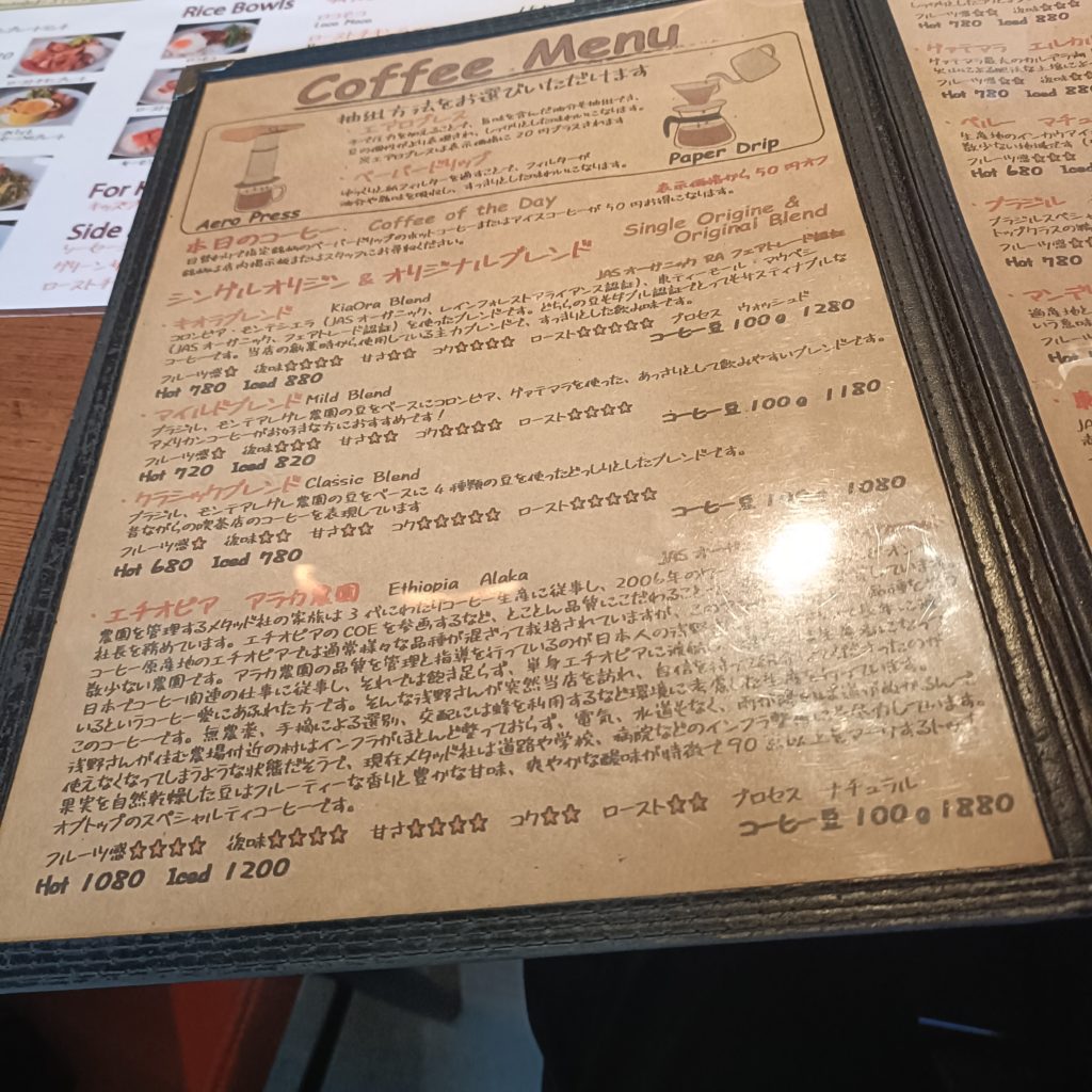抽出方法も選べます!今回はエアロプレスでコーヒーはもう何がいいかわからなかったのでコーヒーマイスターといわれる店員さんに声をかけておすすめを注文!